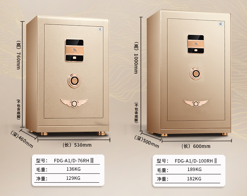 FDG-A1/D-76RHIII 香槟水纹 H760×W530×D460mm 129KG 指纹+电子密码+远程报警