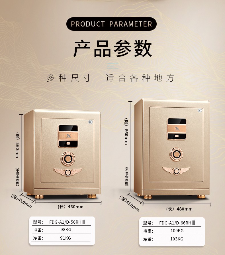 FDG-A1/D-56RHIII 香槟水纹 H560×W460×D410mm 91KG 指纹+电子密码+远程报警