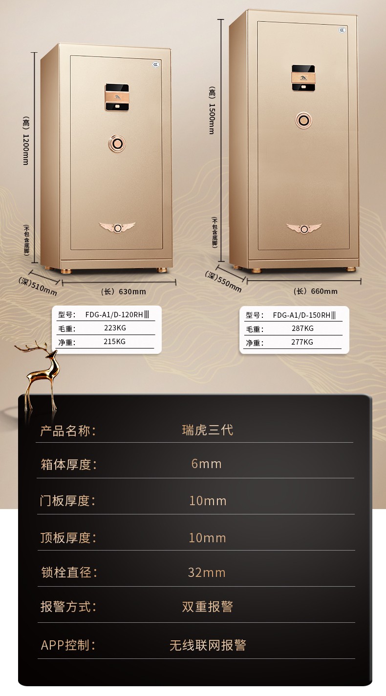 FDG-A1/D-120RHIII 香槟水纹 H1200×W630×D510mm 215KG 指纹+电子密码+远程报警